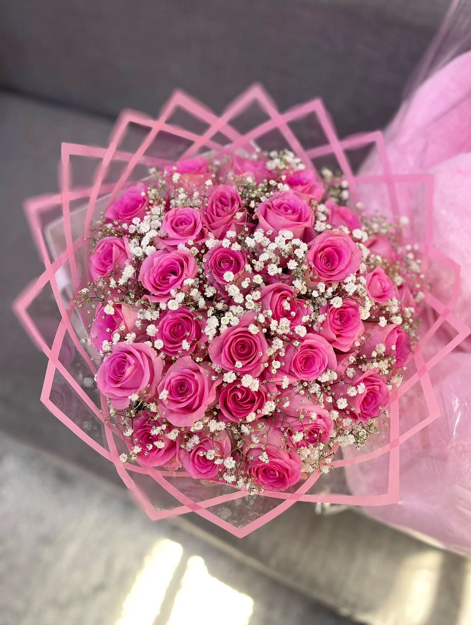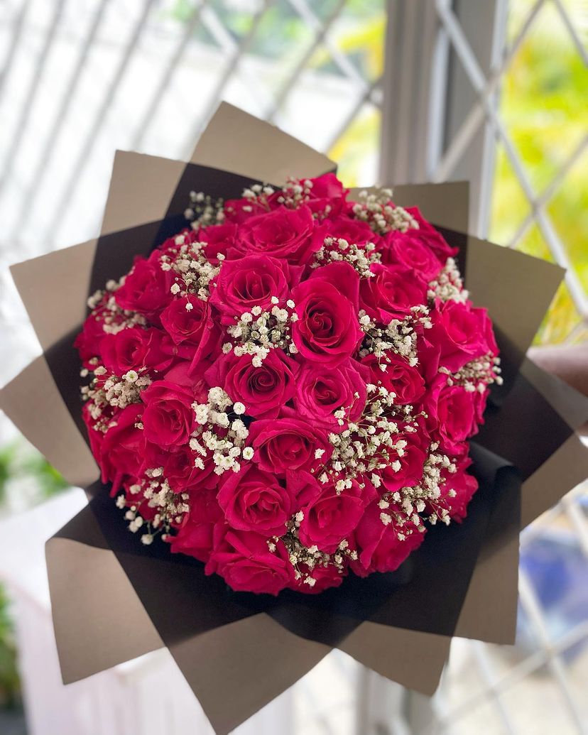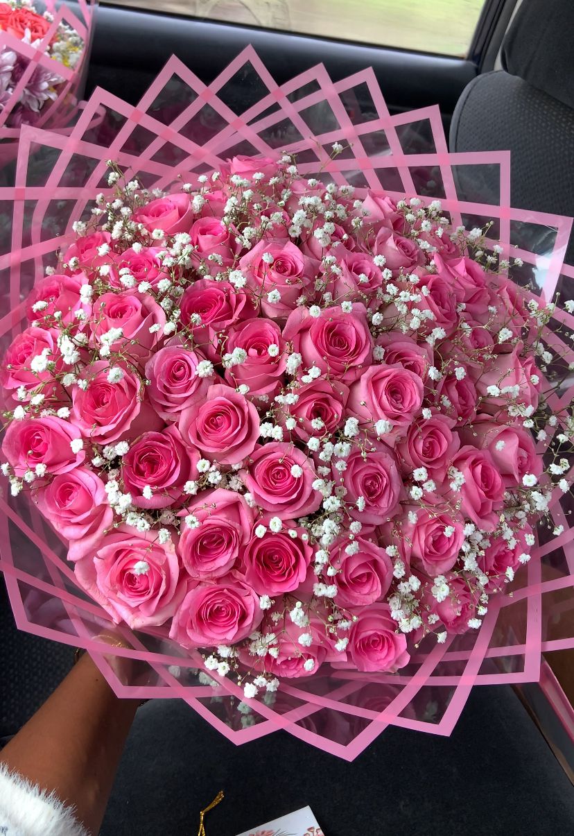 A harmonious pairing of pink roses and million stars, Blush Sonata captures affection and thoughtfulness, perfect for friendships or tender romantic moments.