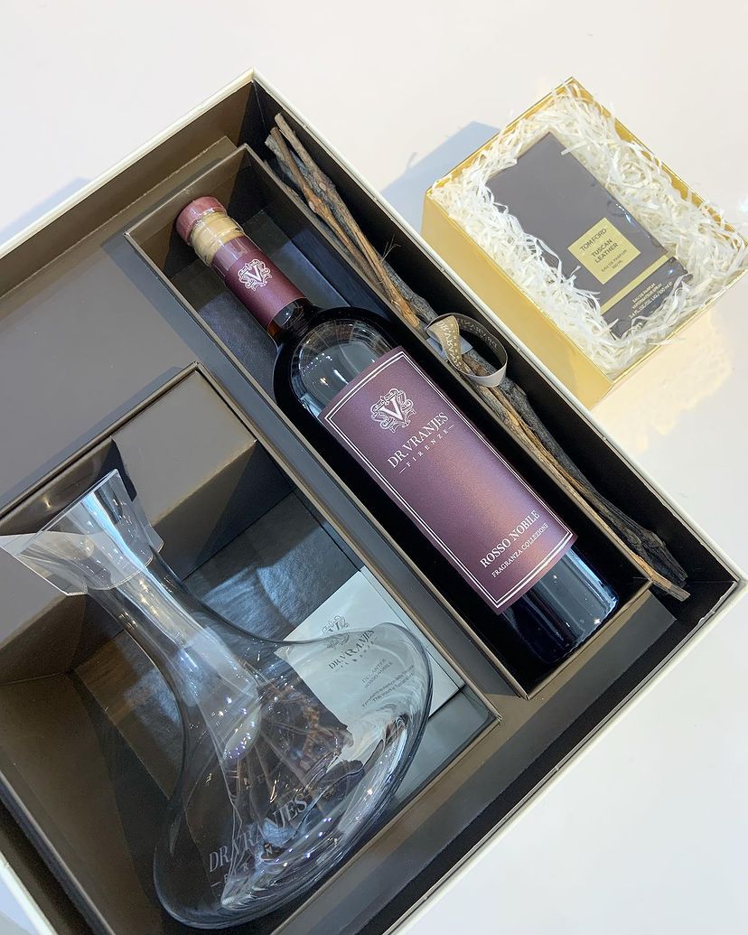 Wrapped in luxury and finished with a bow, this exclusive gift pairs the Dr Vranjes Rosso Nobile decanter and Bordeaux bottle, a fragrance masterpiece for the home, with Tom Ford’s iconic Tuscan Leather Eau de Parfum in 100ml, a scent that speaks of confidence and sophistication.