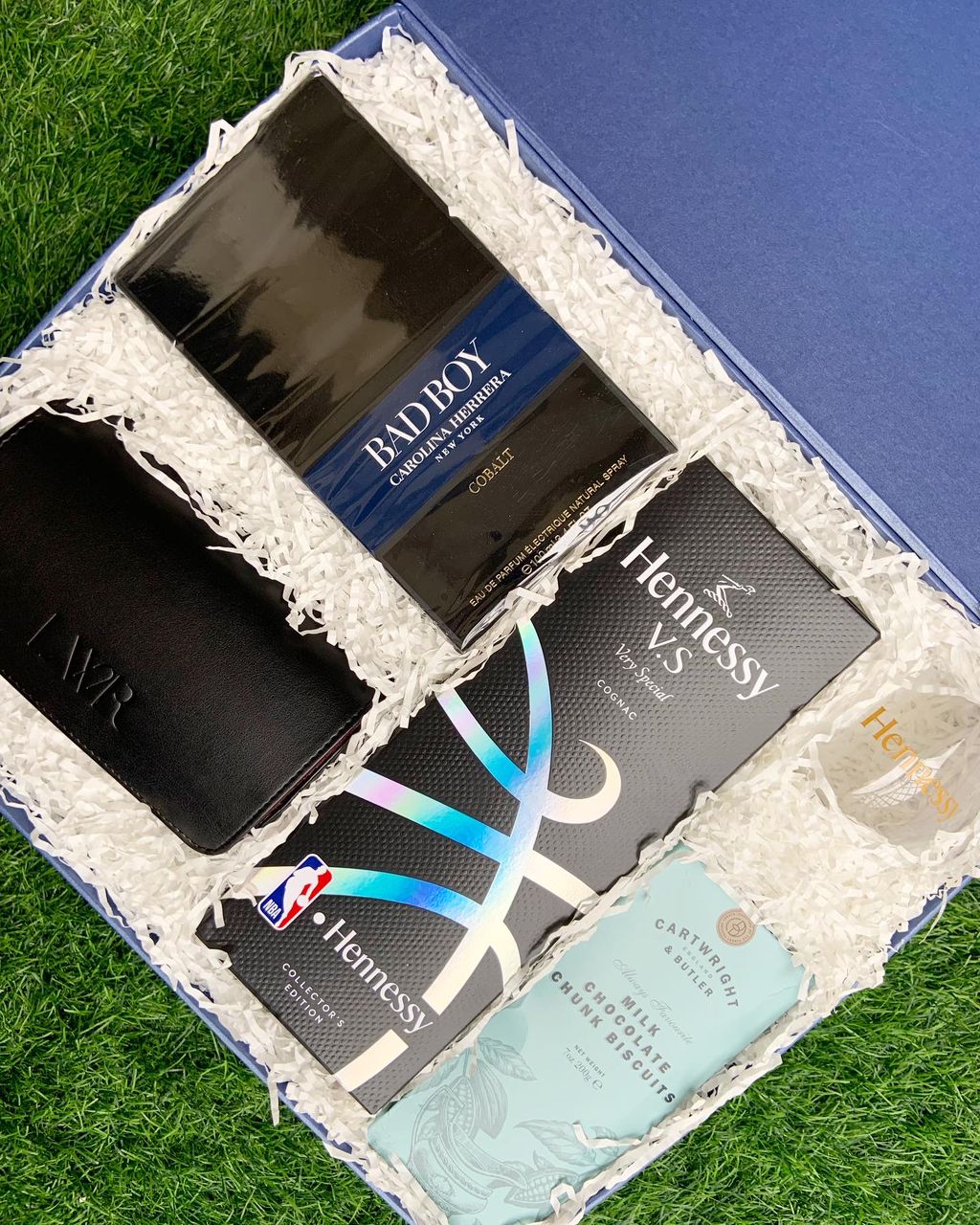 With its bold cobalt theme, The Blue Signature is a masterclass in masculine sophistication. Inside, you’ll find the electrifying 100ml Carolina Herrera Bad Boy Cobalt Parfum Electrique paired with a luxury wristwatch roll that holds three prized timepieces. A smooth bottle of Hennessy VS Cognac with its matching glass adds a refined drinking experience, while premium Cartwright & Butler biscuits provide the perfect indulgent bite.